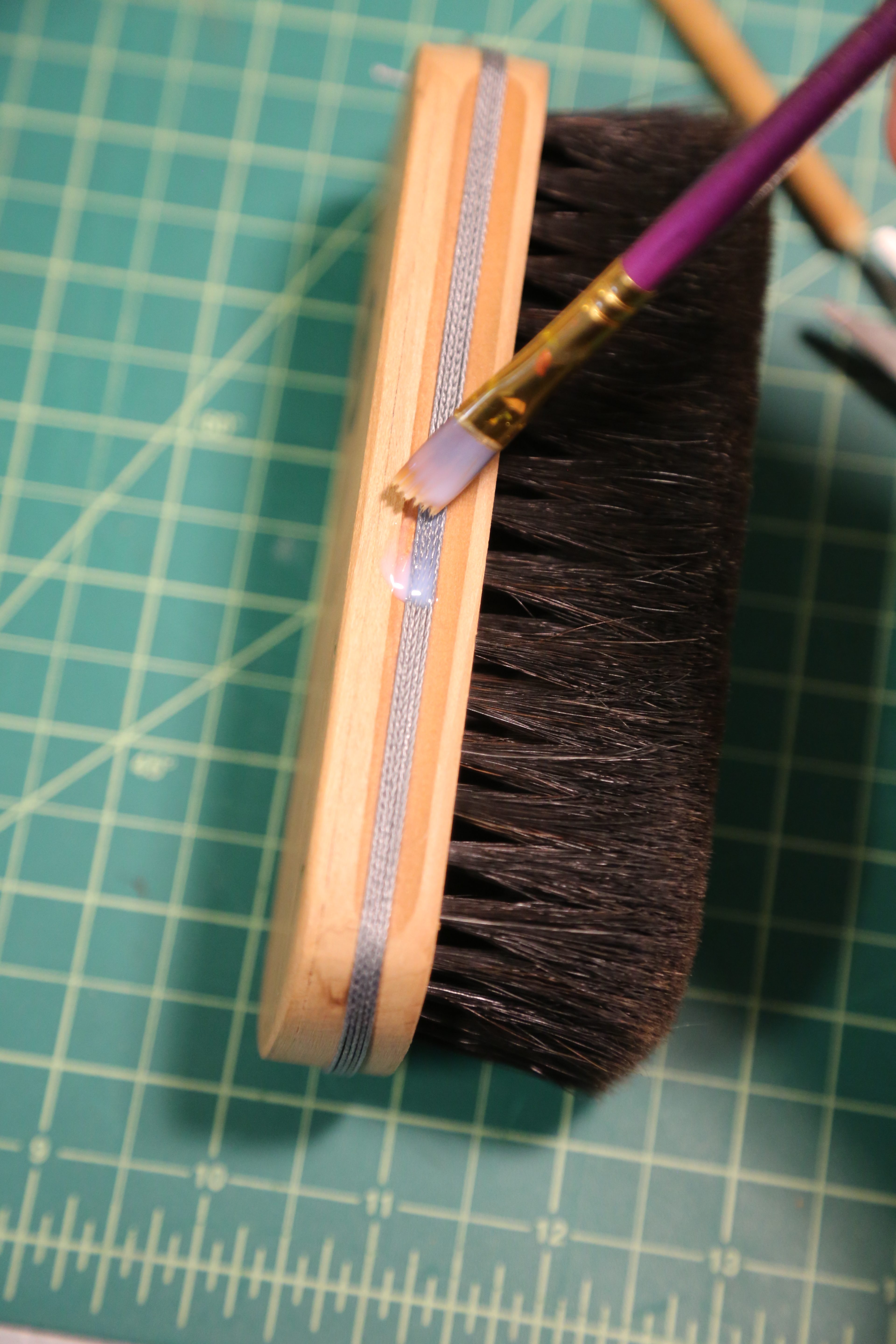 In addition, paint on the underside of the brush’s wood, but avoid getting any varnish on the hairs.